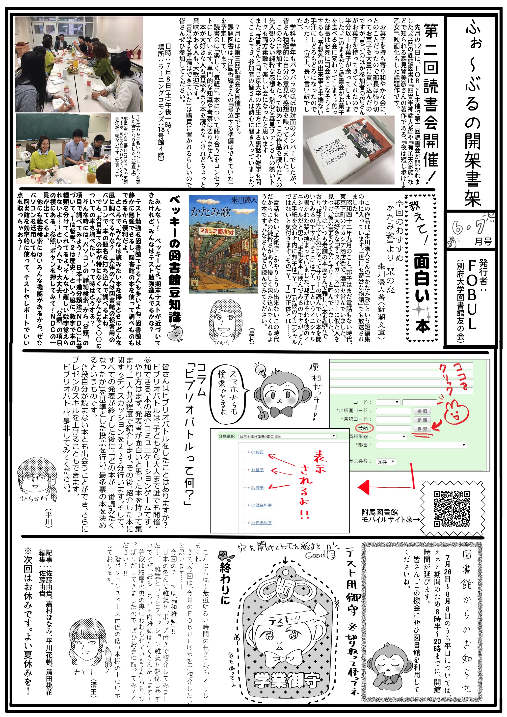 FOBUL(別府大学図書館友の会)の新聞第2弾が発行されました。